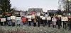 DEMONSTRERTE: Politikarane vart møtte av ein stille demonstrasjon av flyktningar frå SKI utanfor kommunehuset.
