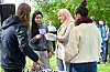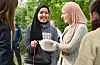 SMIL: Lyden av Brouj Alhasoun (f.v.) og Asmaa Nazih Orfaly får fram breie smil hos dei to jentene. FOTO: Gro B. RøilandFOTO: Gro B. Røiland