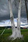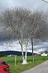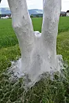 Eit lyst og tynt nett omkransar eit tre som står i vegkanten på Langkåshaugen. Det er eit heller sjeldan fenomen.