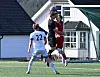 TETT OG NÆRT: Det blei eit jamspelt lokalderby på Nordagutu i dag. Sauherad starta bra og gjekk i kroppen på Skarphedin. Her er ein Sauherad-angripar i nærkontakt med både ball og målvakta til Skarphedin.