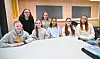 KLAR FOR VIDAREGÅANDE: Sitjande f.v. Vilde Fåne Svaland, Marlene Haugen Ekli, Solveig Bakke, Dalina Sejdiu, og Emma Kristine Kasin. Ståande bak Ingvild MacEoin (t.v.) og Ingvil Bjerketvedt.