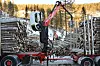 TØMMERTRANSPORT: To bilar frå Langkås Transport i sving med å hente tømmer i Hestedalen Eikjabygda i fjor. Sjåførar er Håkon og Andreas, med etternamn Listog Seland.
