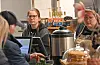 Torsdag opna kafeen igjen. Den faste gjengen gratulerte med ein bukett tulipanar