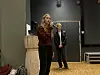 FOREDRAG: Alvilde Haugen og Snorre Skalstad på Gvarv skole.