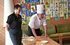 Gvarv skole hadde bestemt seg for å kutte ut julegrauten på skulen i år. Erlend, Gunn Anita og Ole Kristian tok skeia bokstaveleg talt i eigne hender.