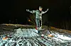 Fredag kveld under nattope var det noko så sjeldan som tilbod om skileik i Bø sentrum. Ungar og vaksne hoppa i ein preparert hoppbakke ved Bøsenteret.