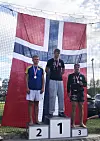 PÅ PALLEN: Sverre Ims (t.v.) frå Midt-Telemark fekk utdelt sølvmedalje for innsatsen.