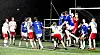 KAMP OM BALLEN: Her trykkjer Skarphedin på med mange mann på eit hjørmnespark i andre omgang på Sandvoll i kveld.