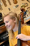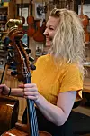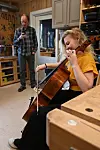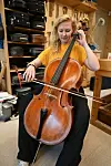 Cellist Amalie Stalheim fekk tysdag prøve Ottar Kåsa sin splitter nye hardingcello. Begge var spent på testen av det unike instrumentet. Cellistens ansiktsuttrykk ved første bogestrøk fjerna all tvil.